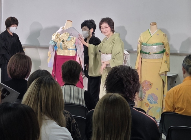 奈良県美容業生活衛生同業組合の先生方や在校生も参加し、講師には橿原美容専門学校 ・芝原ミサコ先生を、お迎えし