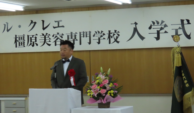 式典では、学校長より3年間の学習への激励、来賓を代表し奈良県美容業生活衛生同業組合理事長より、これから始まる学びと挑戦に向けての励ましのお言葉をいただきました。