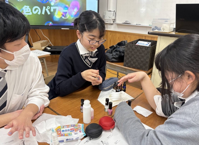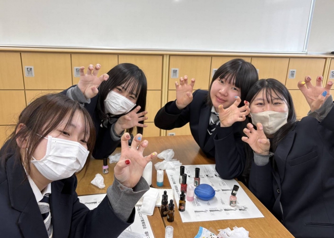 アロマの香りに包まれてながら、ネイル(水溶性)やハンドマッサージの実習も体験!